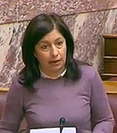 of Freedom party (not in parliament as of 2020). Went after PASOK leader Evangelos Venizelos for corruption; he responded by asking when she would be pregnant.