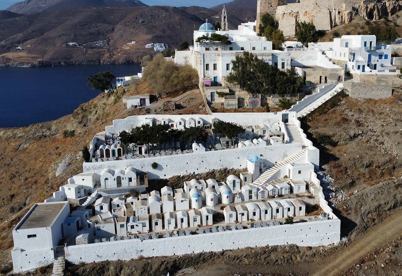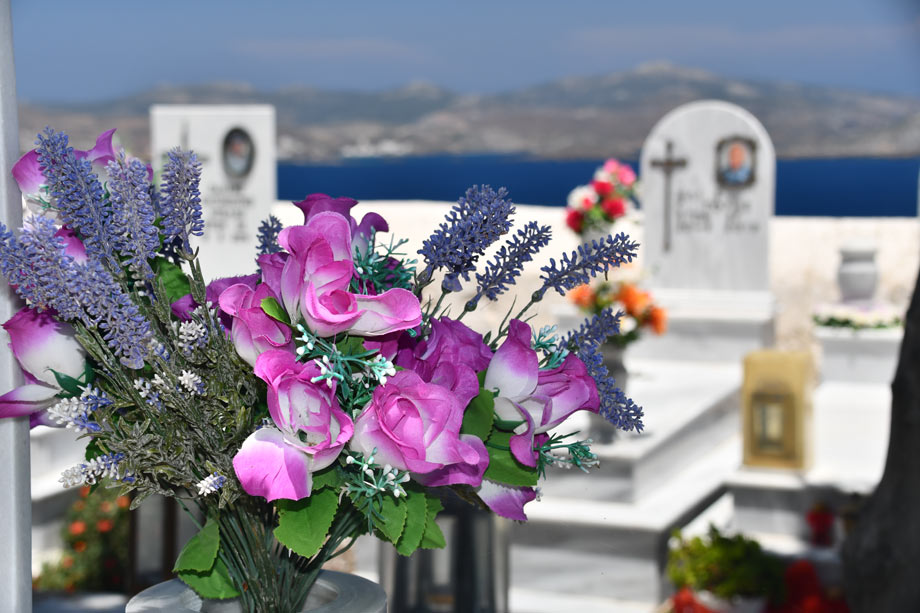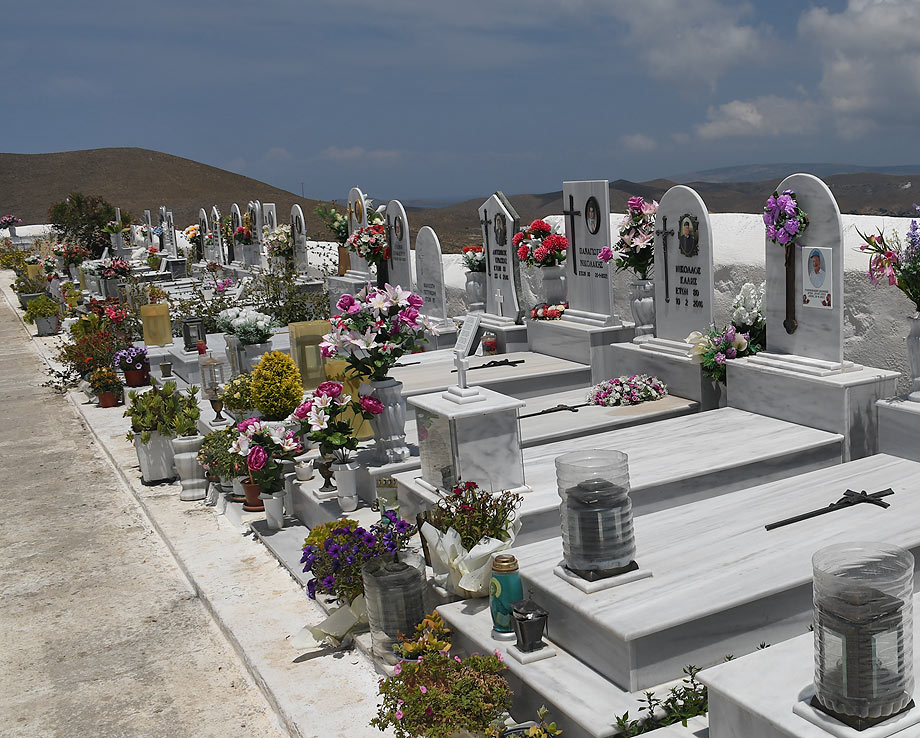 Just to the east of the main church in the Kastro, and halfway down the hillside, is the beautiful cemetery.