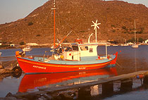 Fishing boats: another day in the eternal rhythm. Heading out from Skala harbor. |