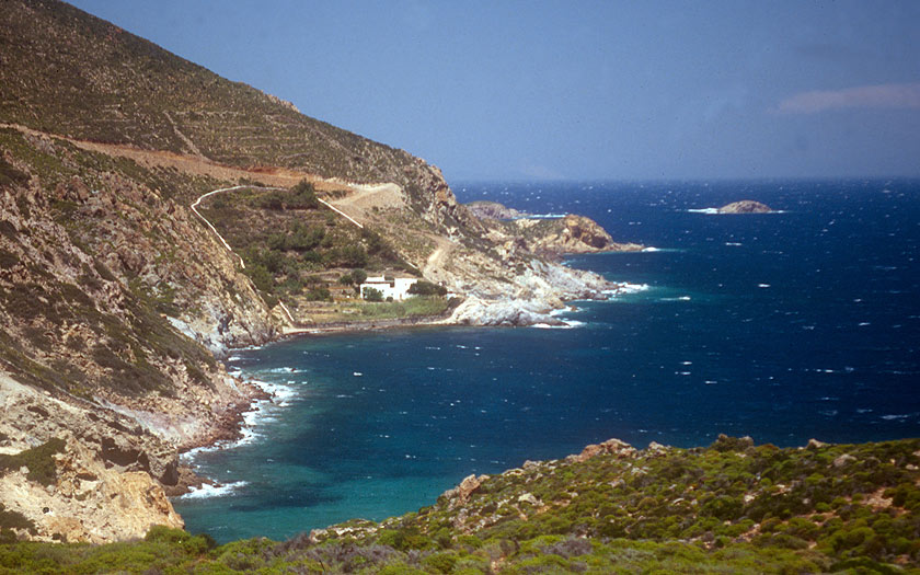 A view looking north from near the monastery. Skala is in the left at