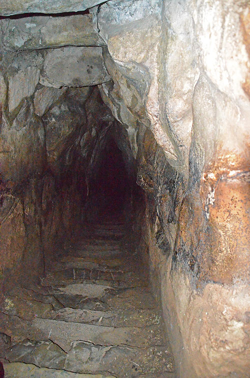 Standing at the entrance to the stairway you see this. Rough, uneven steps going down - but note the massive construction.