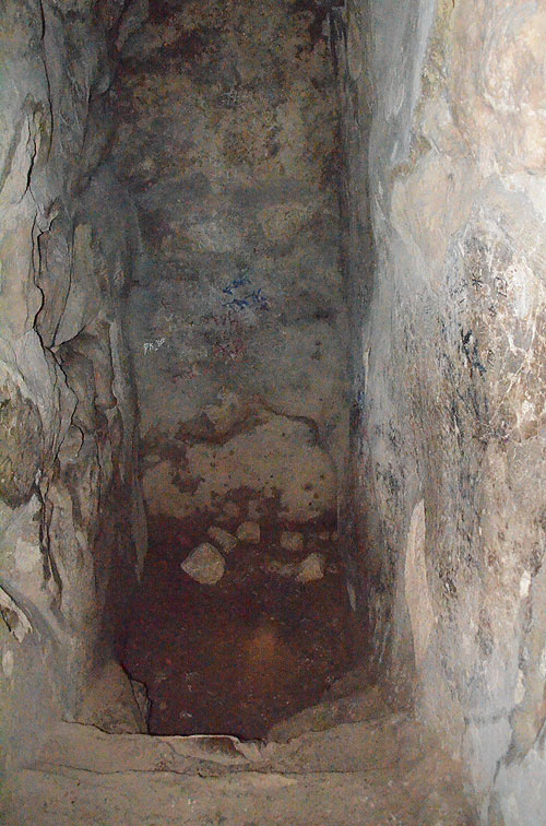 Finally the destination. There used to be a cistern here in a long plunge down but it has been filled in for safety. Would be very scary hauling water out of this lit only by candles.