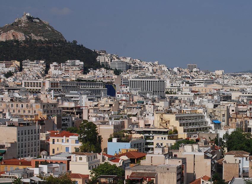 So this is it. That's the Acropolis rising behind it. From the balcony a great view of Athens.